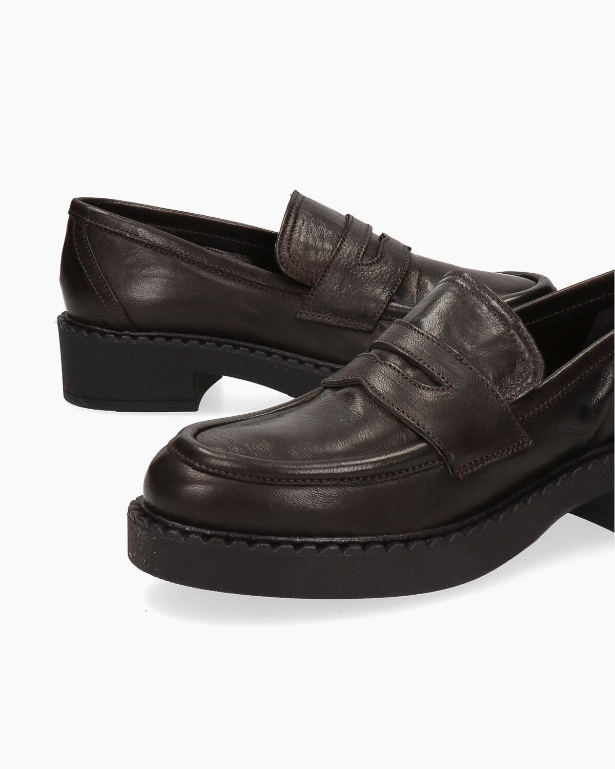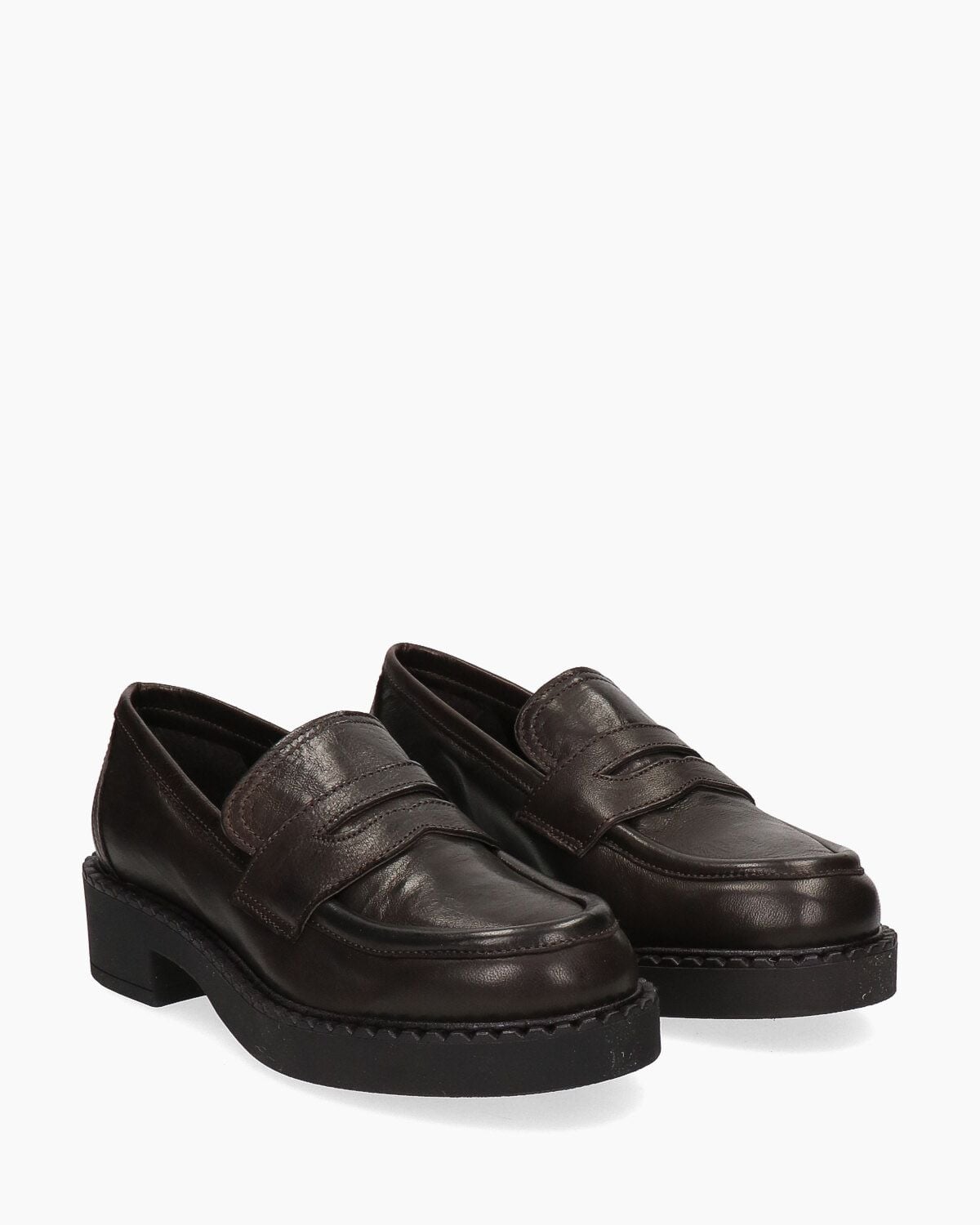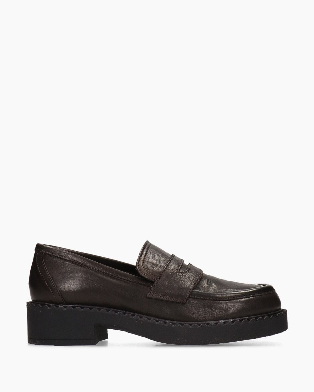 Mocassini in pelle marrone, conciata esclusivamente con prodotti naturali, suola in gomma, tacco 40mm, soletta in pelle, punta tonda, made in Italy, collezione donna Creative Autunno Inverno 2021/2022