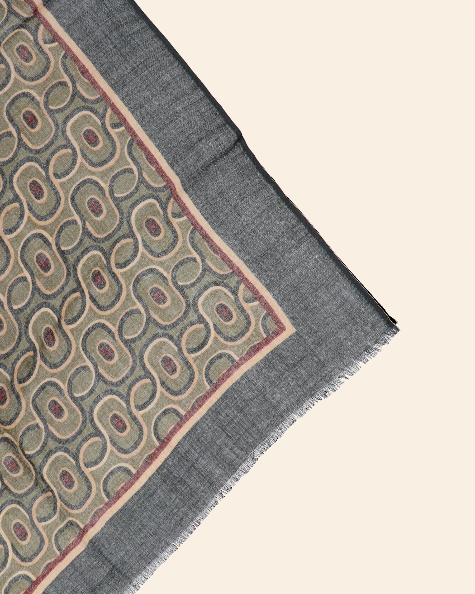Stola in garza di pura lana a fantasia gialla, moro e panna con disegno della collezione, 70 x 180 cm, collezione donna Maliparmi Autunno Inverno 2025/26