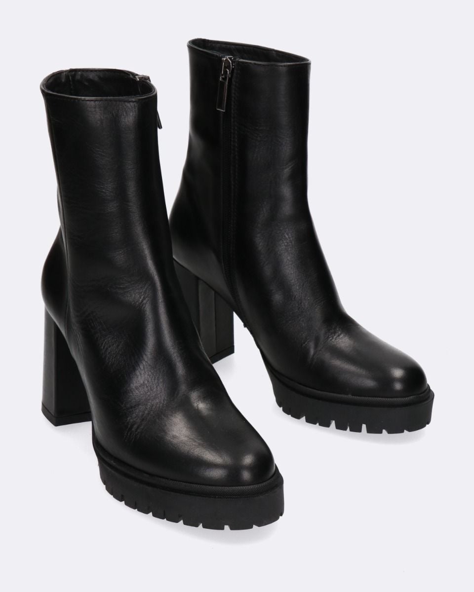 Stivaletti in pelle nera, tacco ricoperto 90mm, chiusura laterale con zip, suola in gomma, soletta in pelle, fodera in pelle, made in Italy, collezione donna Imma Autunno Inverno 2022/23