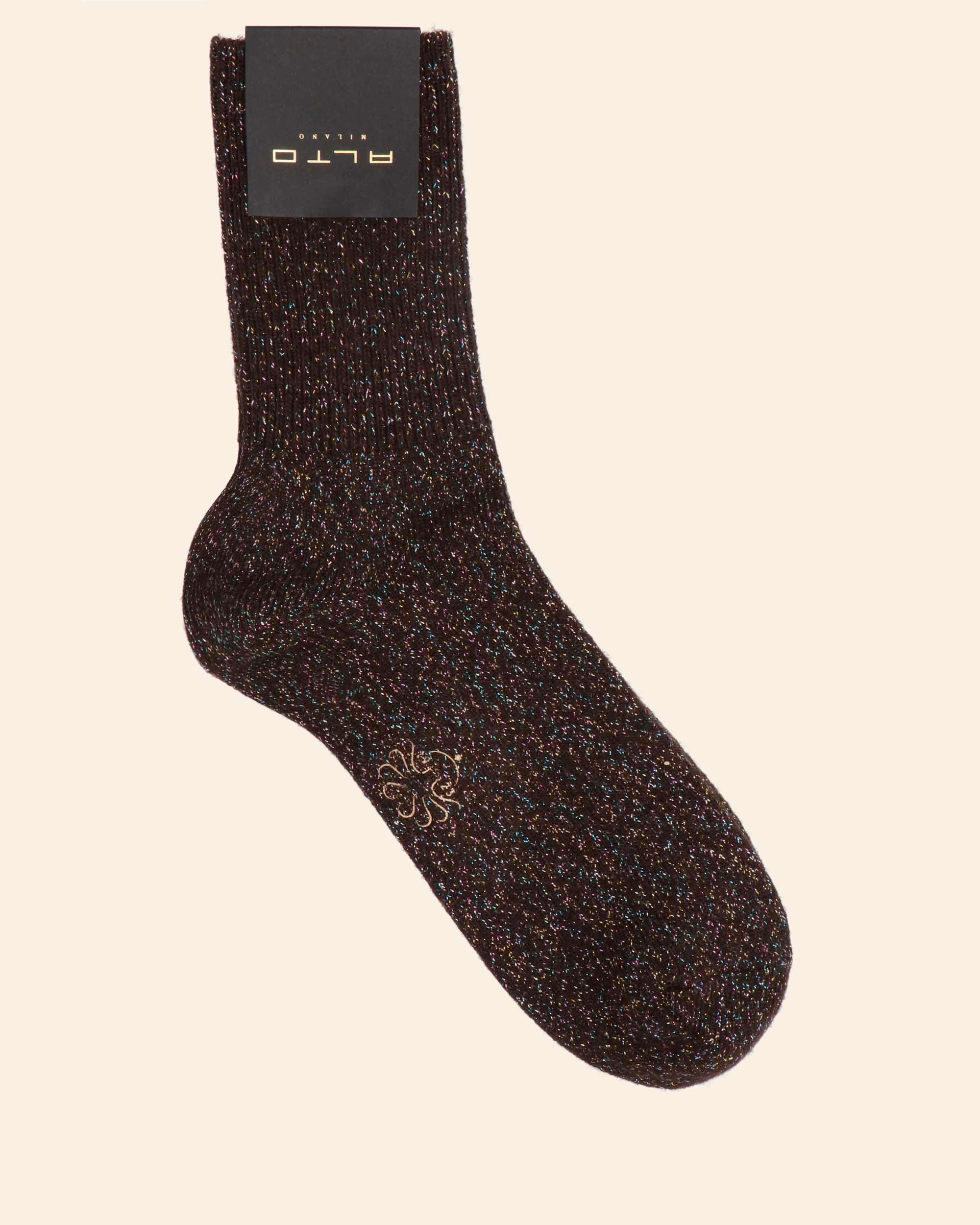 Calza corta color marrone in misto lana stretch con lurex, taglia unica, made in Italy, collezione Alto Milano