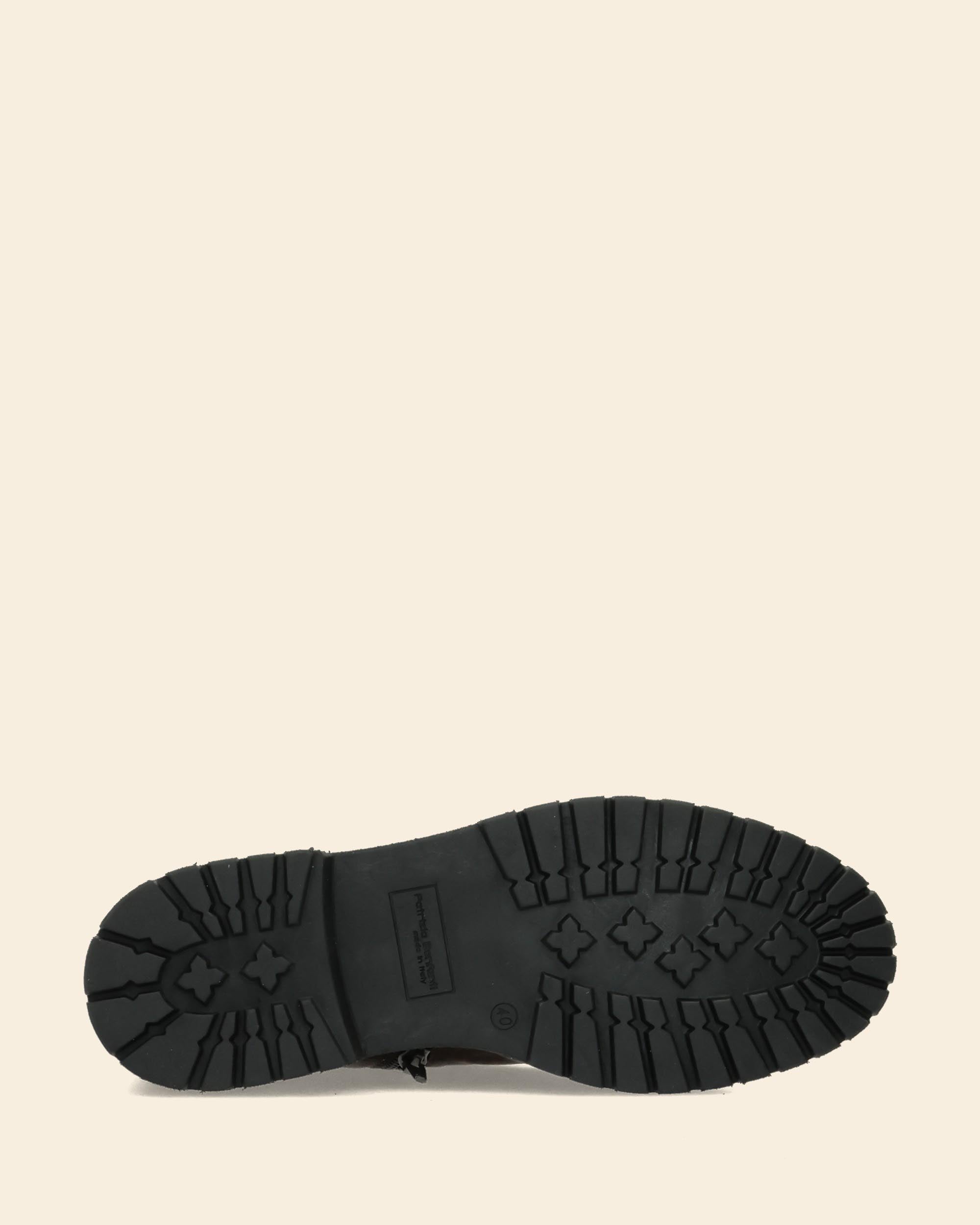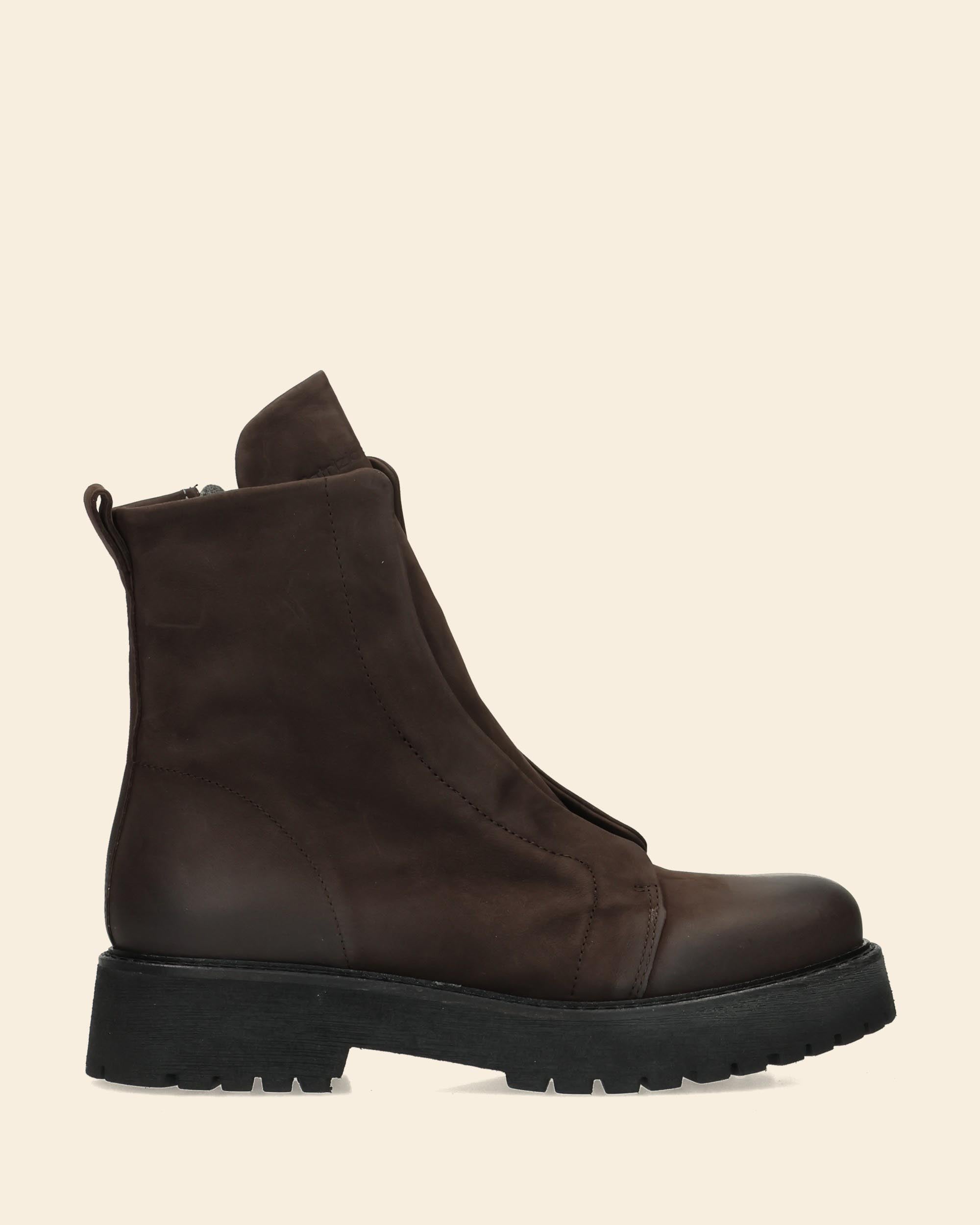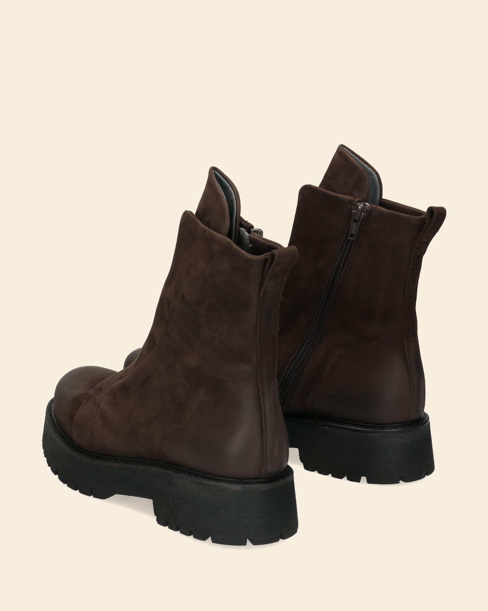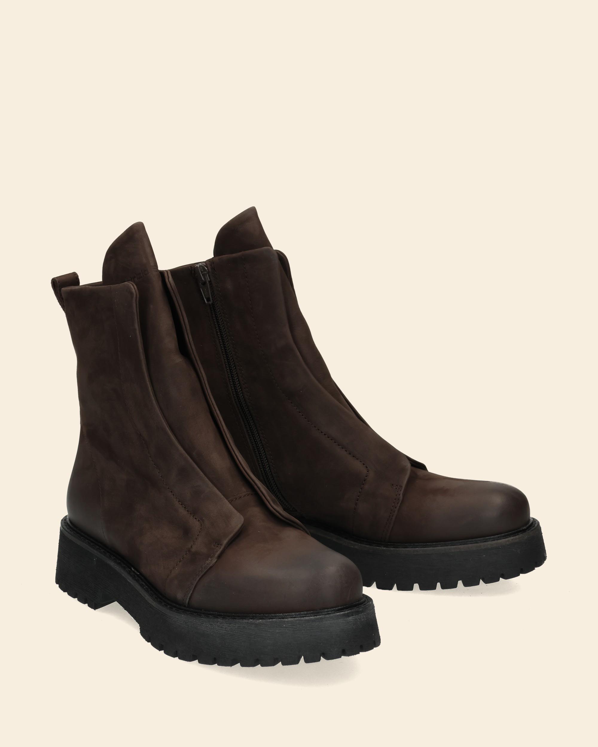 Anfibi in nabuk testa moro con elastico nascosto, senza lacci, chiusura con zip laterale, suola mart in gomma , tacco 40, battuta 15, platform 25, fodera in pelle, sottopiede in pelle, punta tonda, made in Italy, collezione donna Patrizia Bonfanti Autunno Inverno 2025/26