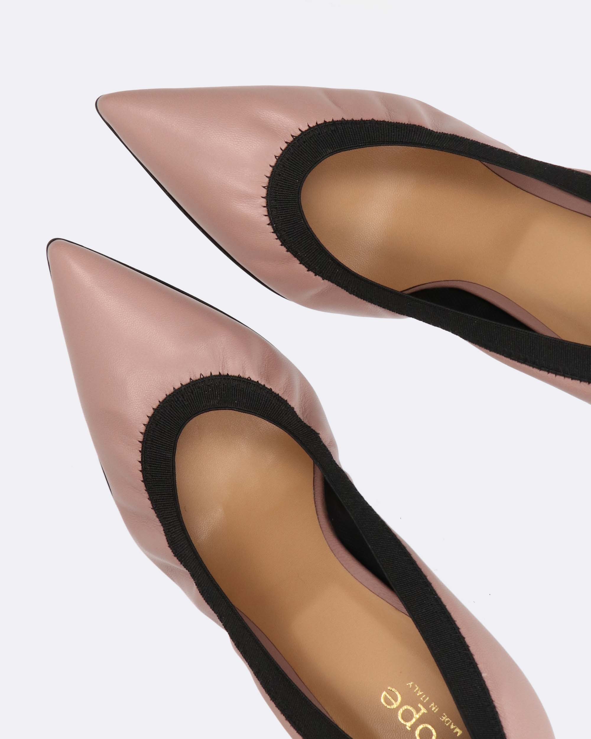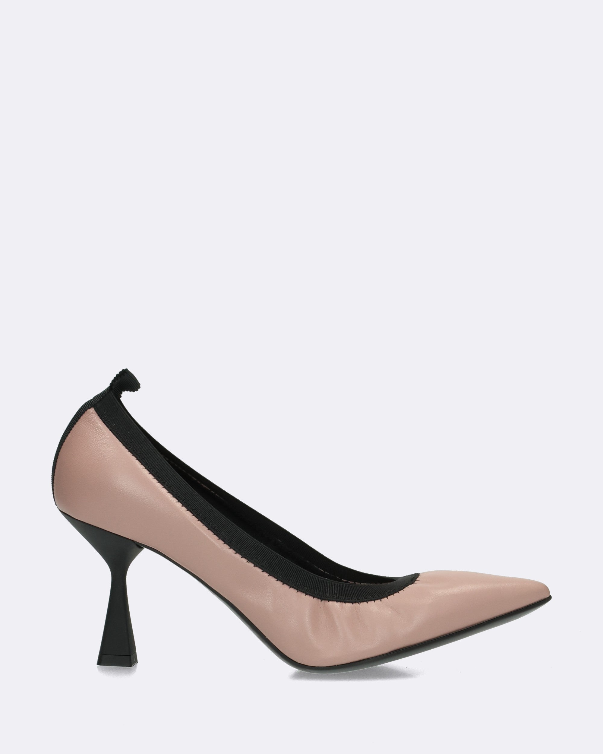 Décolleté in pelle color nude con inserto elastico nero, tacco ricoperto 80mm, sottopiede in pelle, suola in gomma, made in Italy, collezione donna Hope Primavera Estate 2025