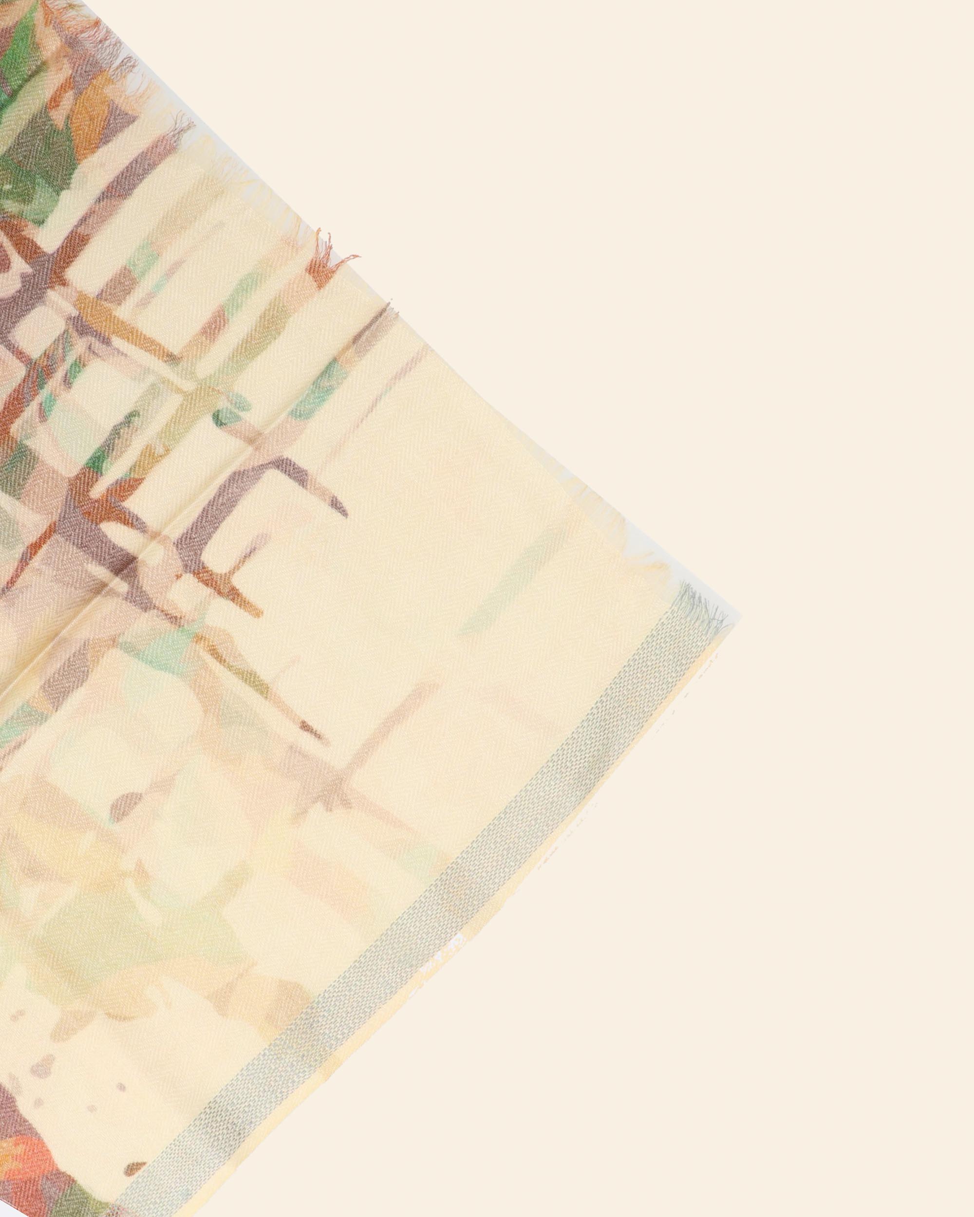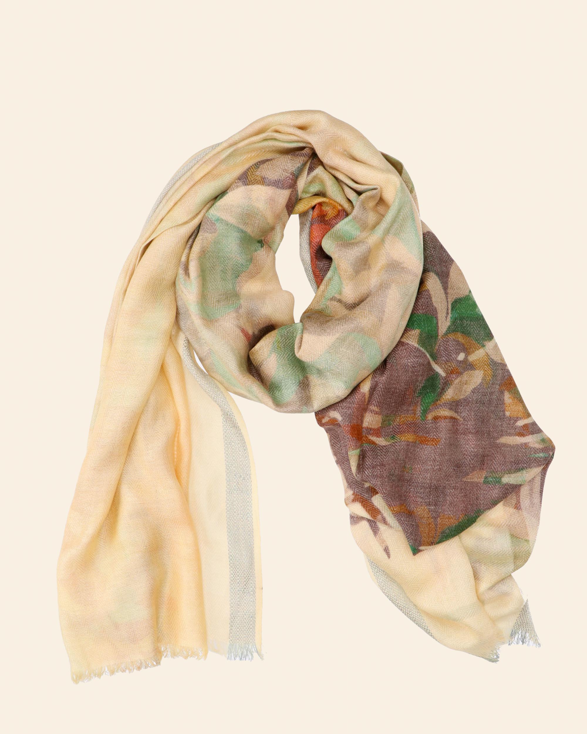 Stola in 50% lana e 50% modal a fantasia beige verde e marrone, misura 90 cm x 200 cm, collezione donna Pyaar Autunno Inverno 2025/2026