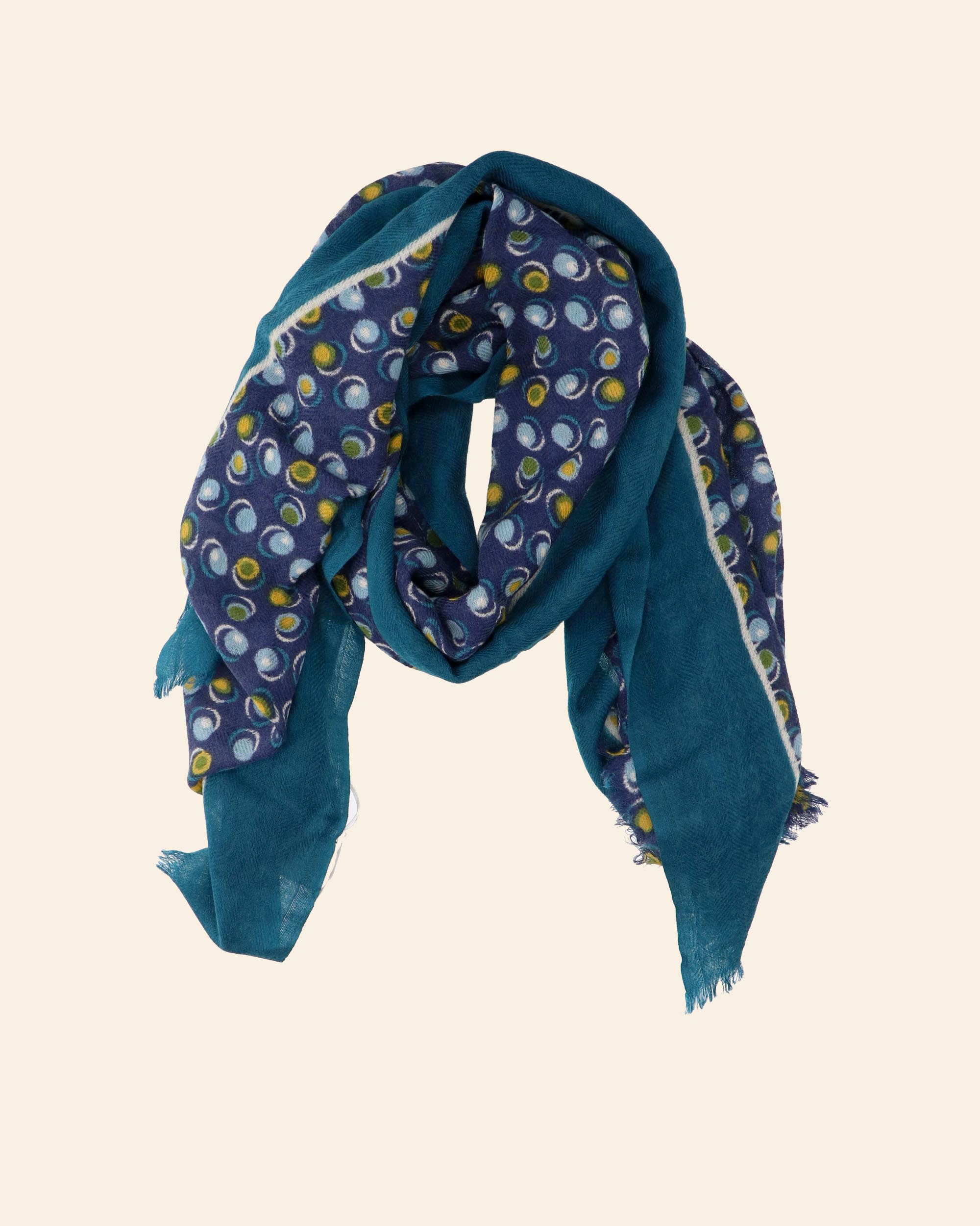 Stola in 100% lana a fantasia blu azzurro e petrolio, misura 70 cm x 180 cm, collezione donna Pyaar Autunno Inverno 2025/2026