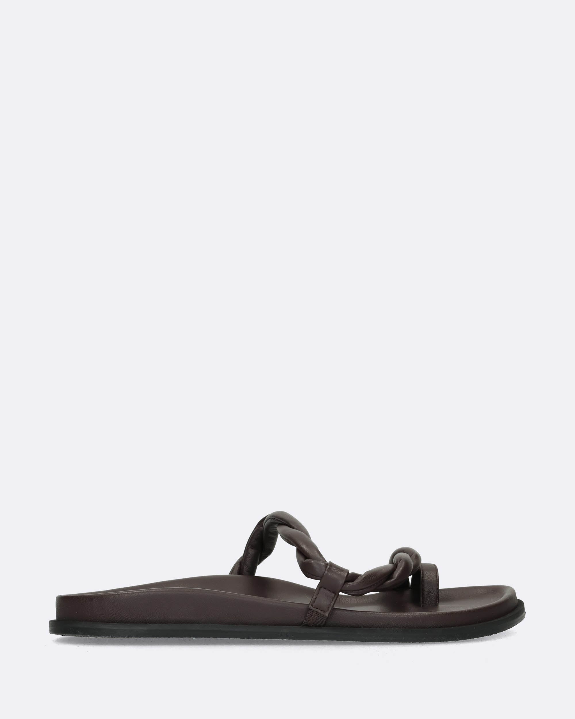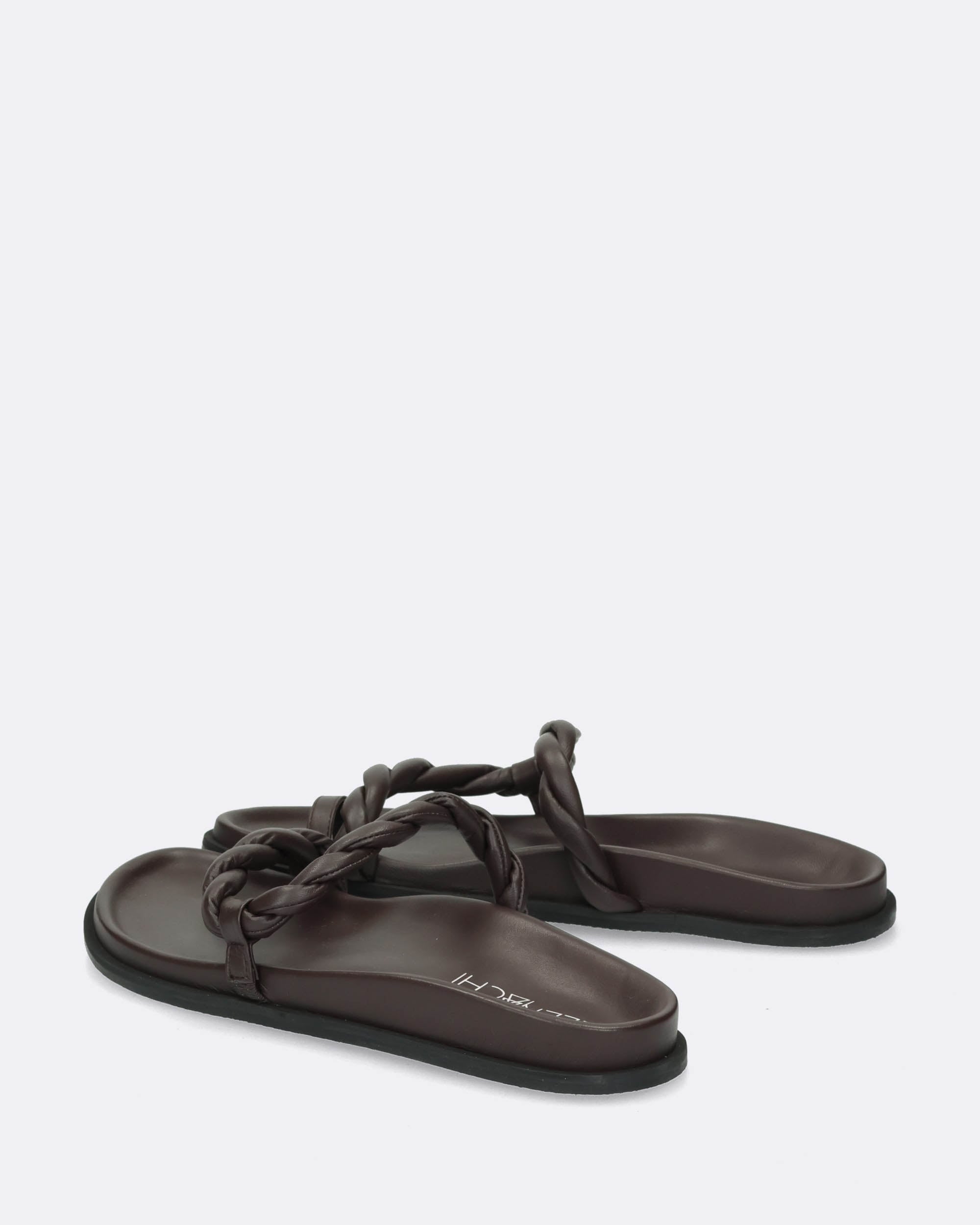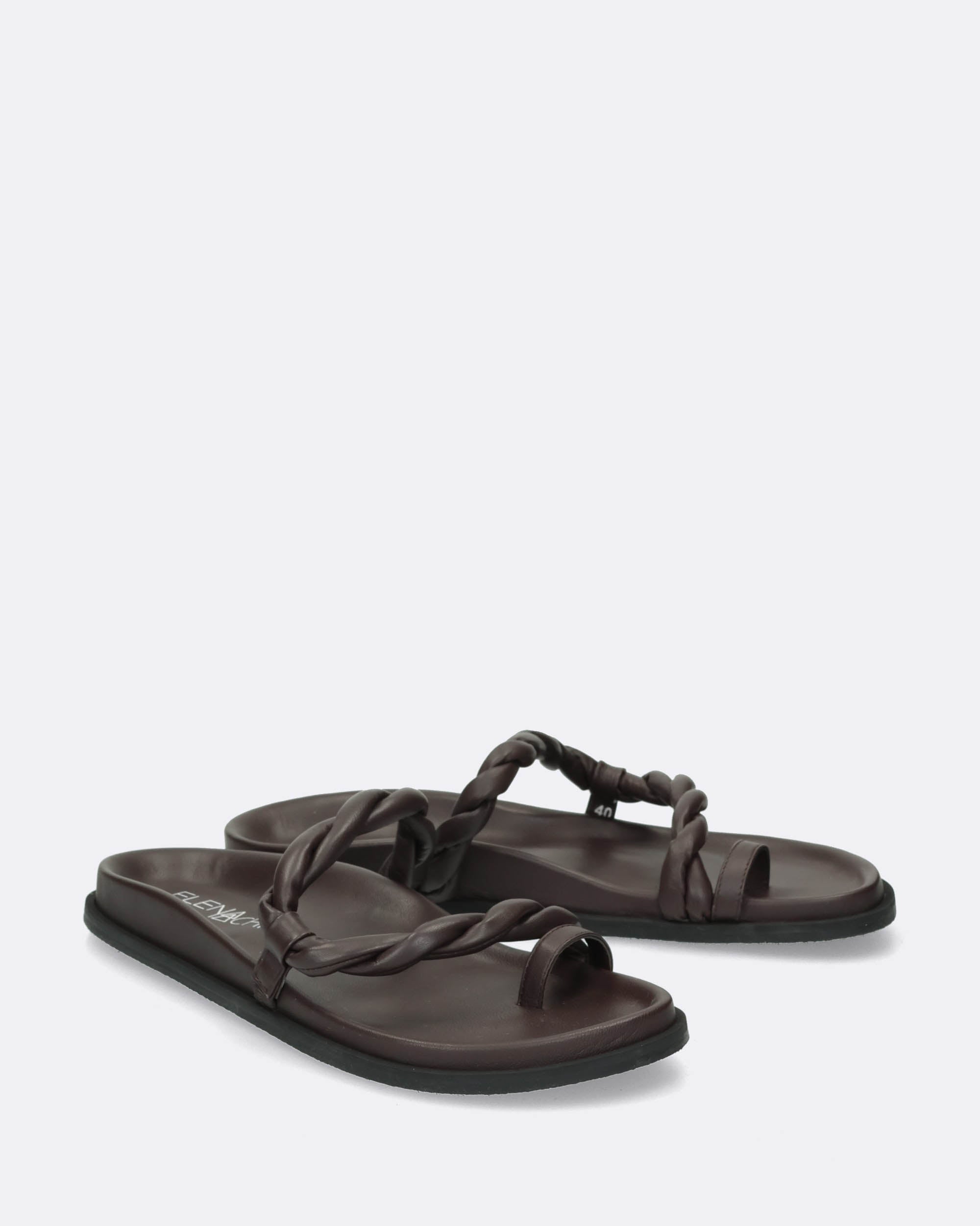 Sandali flat testa moro in pelle, sottopiede anatomico in pelle, suola in gomma, collezione donna Elena Iachi Primavera Estate 2025