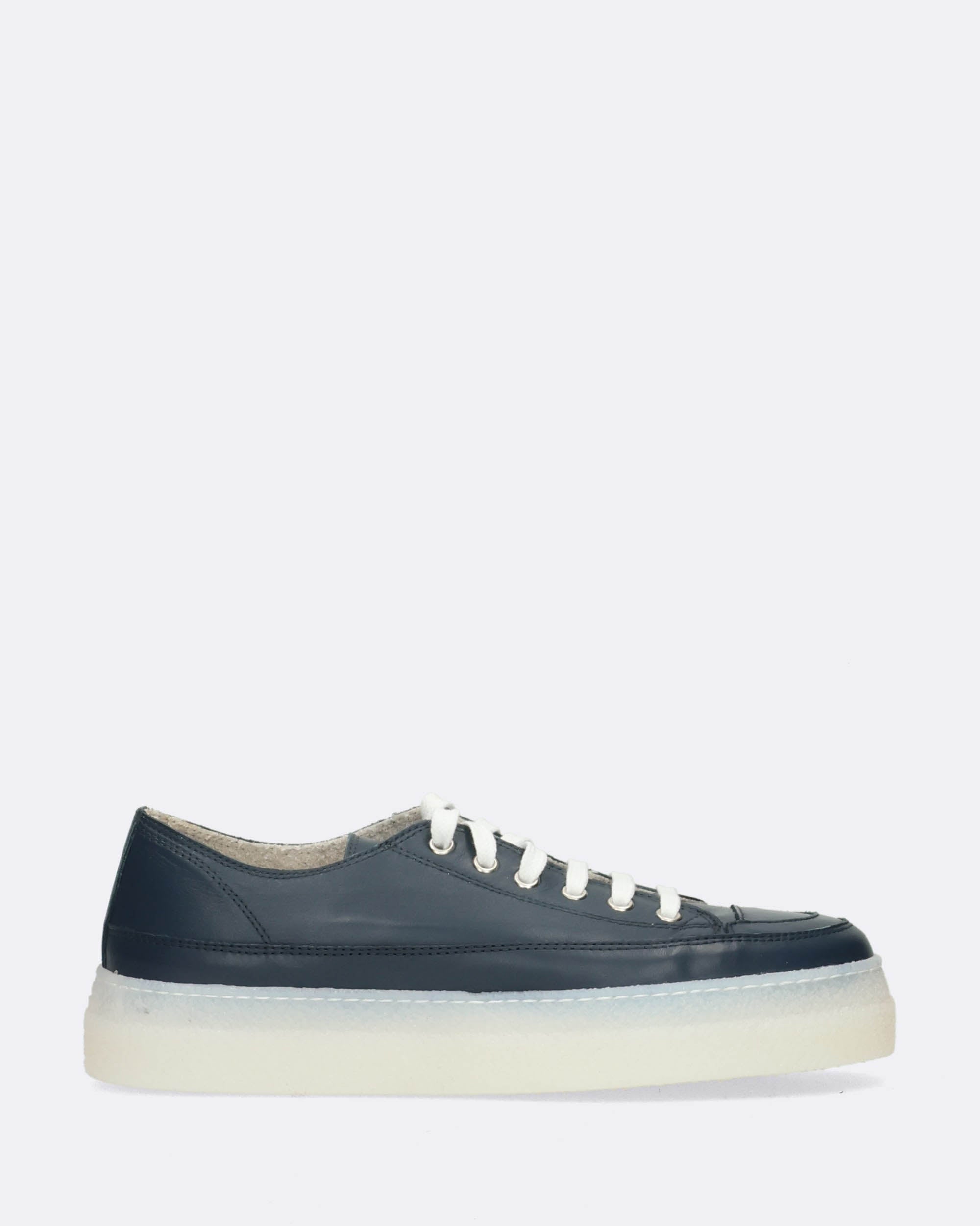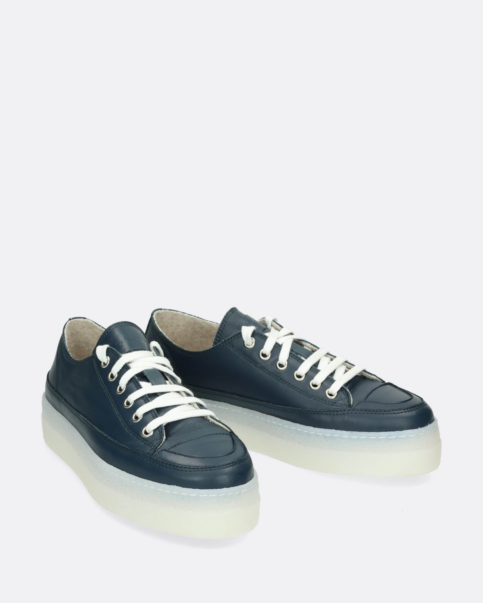Sneakers blu in pelle, sottopiede in pelle estraibile, suola in gomma, made in Italy, collezione donna Patgoa Primavera Estate 2025