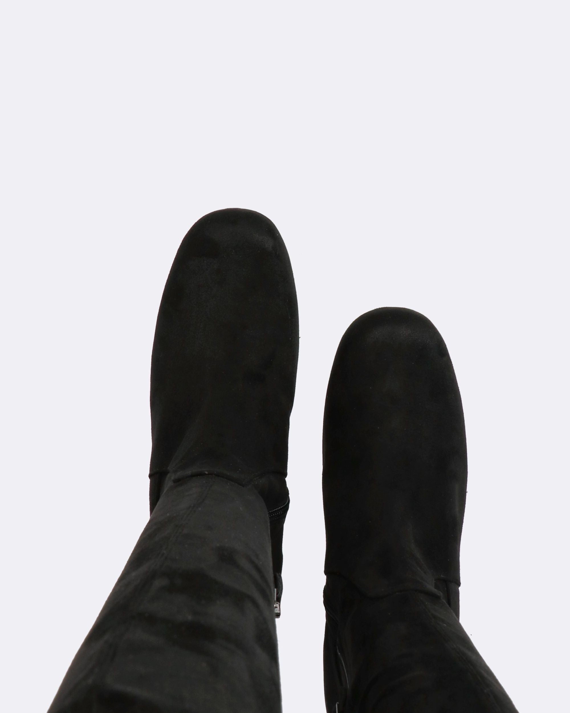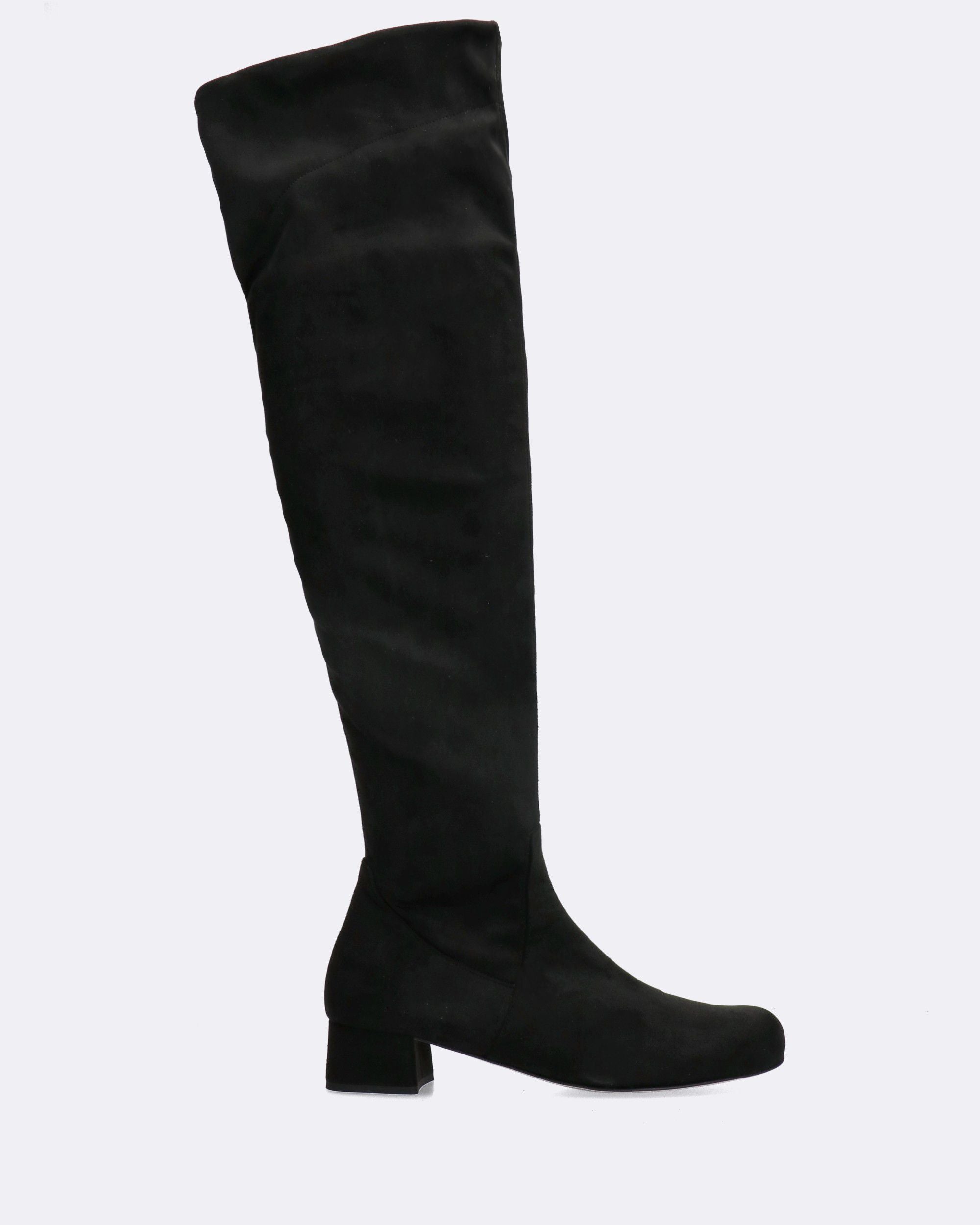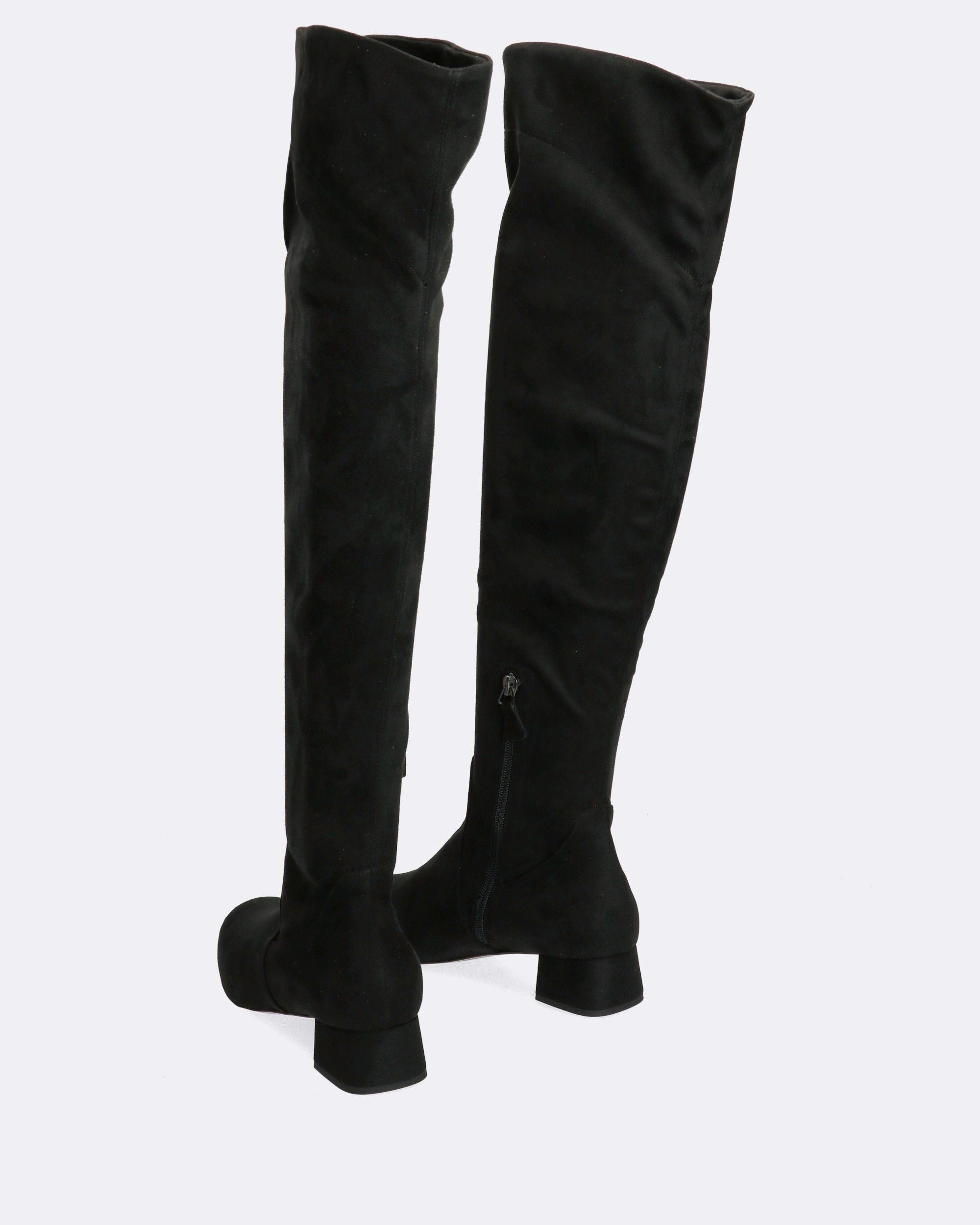 Stivali neri cuissardes in eco camoscio, tacco ricoperto 40mm, suola in gomma, fodera in pelle, sottopiede in pelle, chiusura con zip laterale, made in Italy, collezione donna Hope Autunno Inverno 2024/25