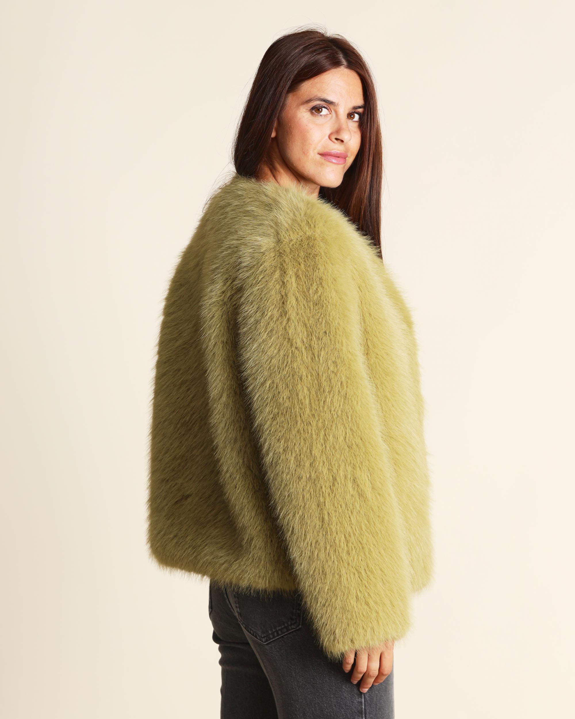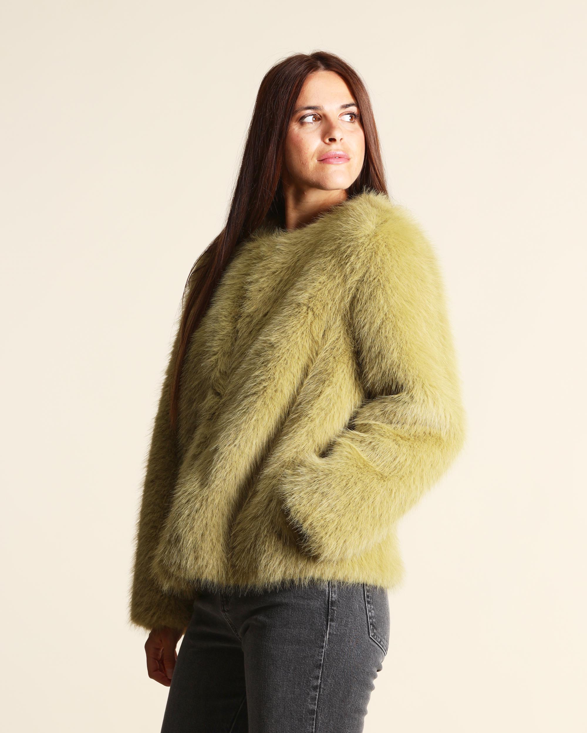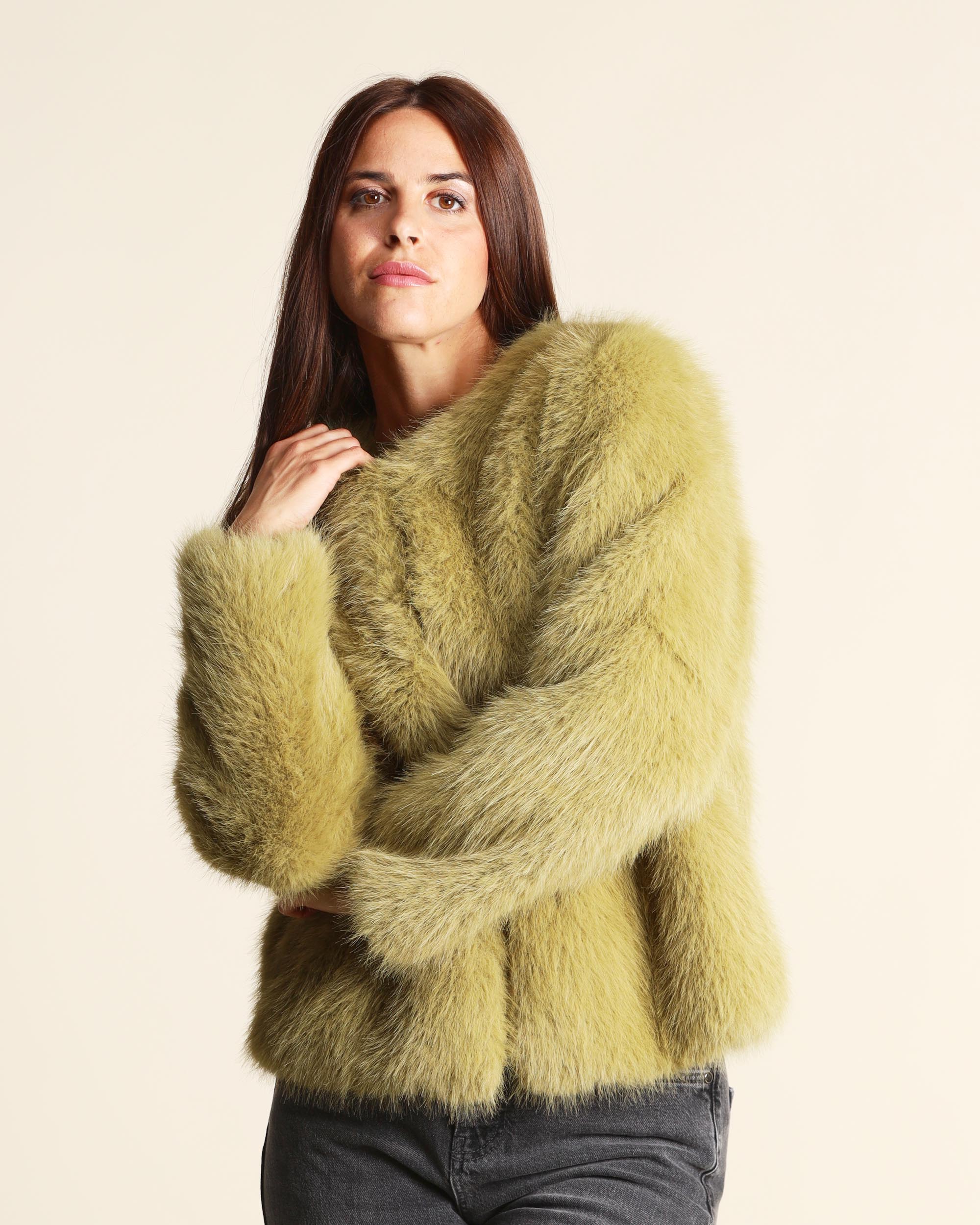 Giacca morbida in soffice tessuto verde oliva, scollo tondo, maniche lunghe, linea dritta, chiusura con ganci, tasche inserite sul fianco, foderato, la modella indossa una tg.42, la modella ha le seguenti misure: altezza 178, seno 86,vita 65, fianchi 93, collezione donna I Blues Autunno Inverno 2025/26