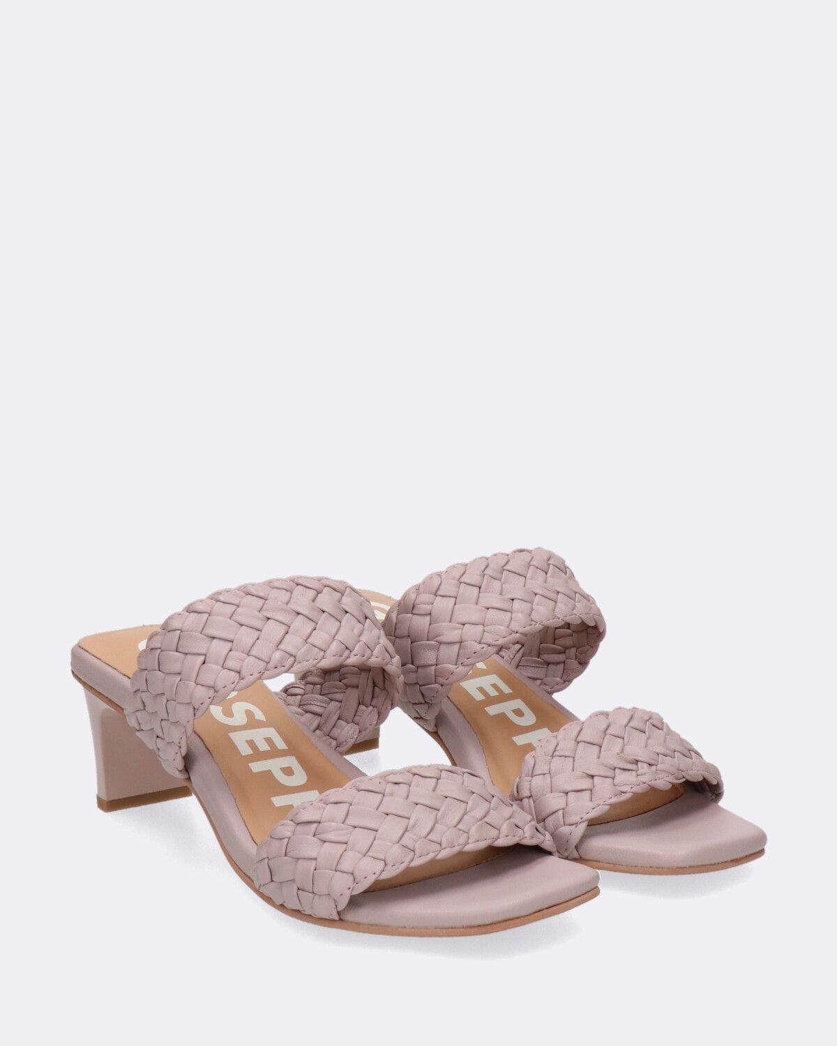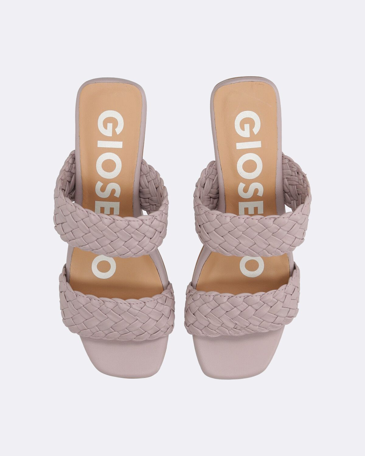Sandali in pelle con fasce intrecciate color malva, tacco 60mm, suola in gomma, sottopiede in pelle imbottito, collezione donna Gioseppo Primavera Estate 2022