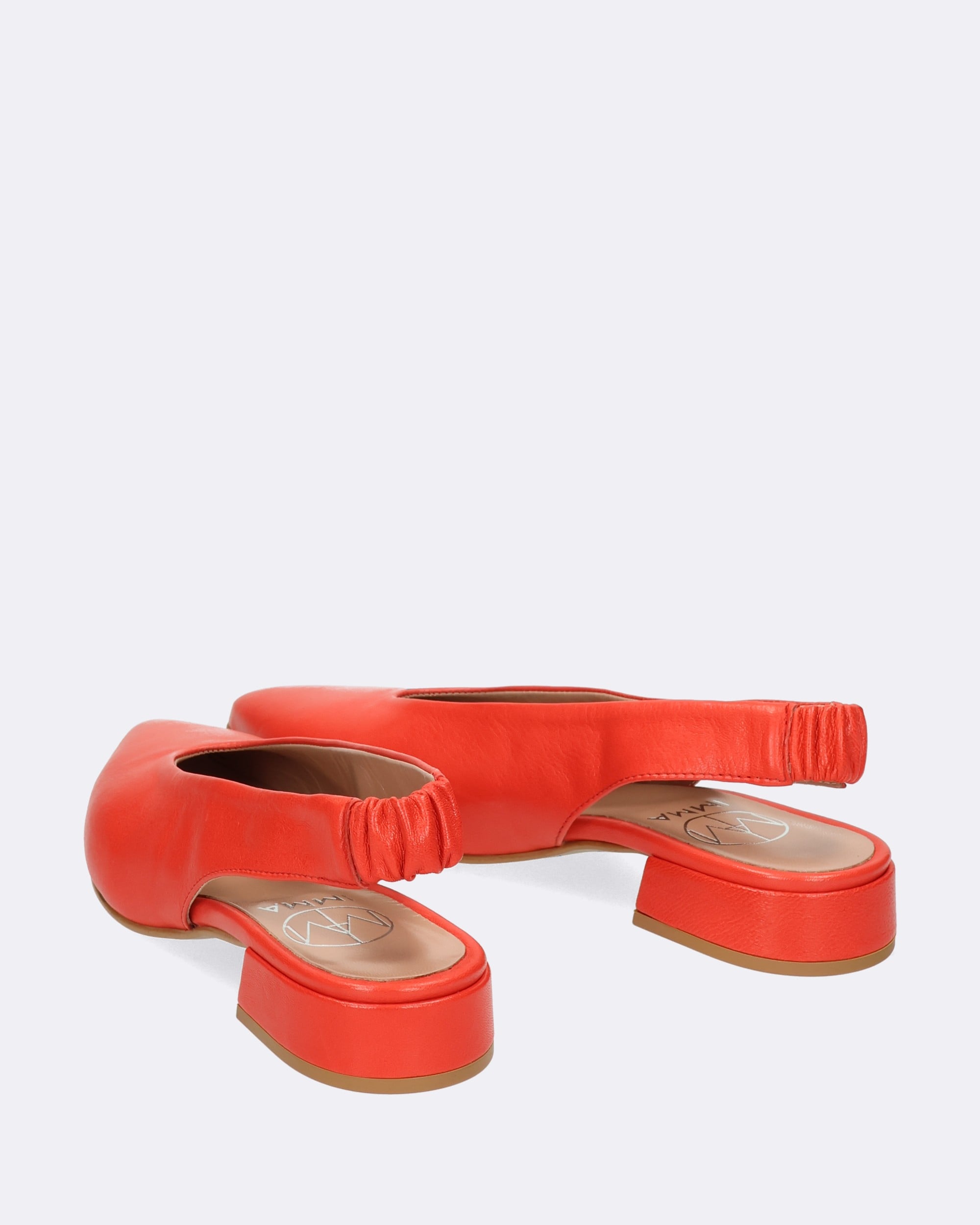 Ballerine rosse in pelle, tacco ricoperto 25mm, suola in gomma, sottopiede in pelle, cinturino con elastico inserito, made in Italy, collezione donna Imma Primavera Estate 2025