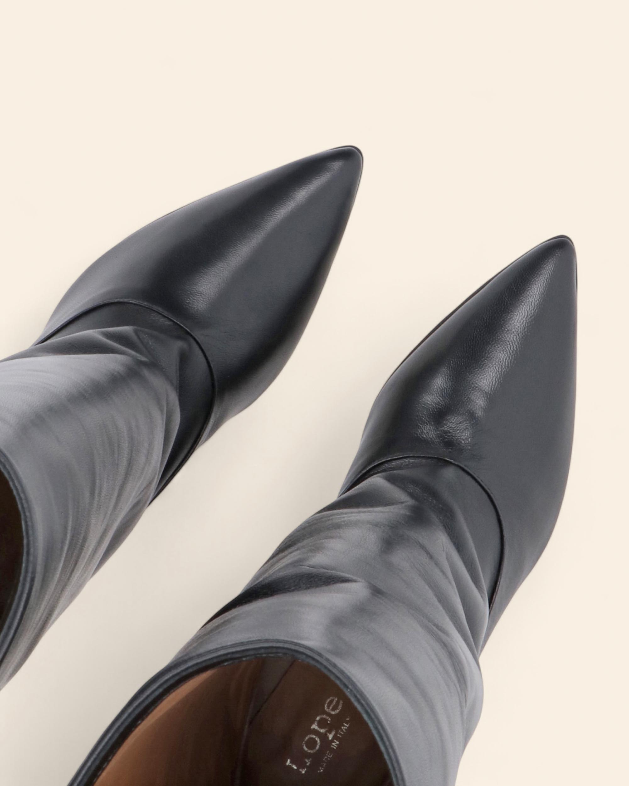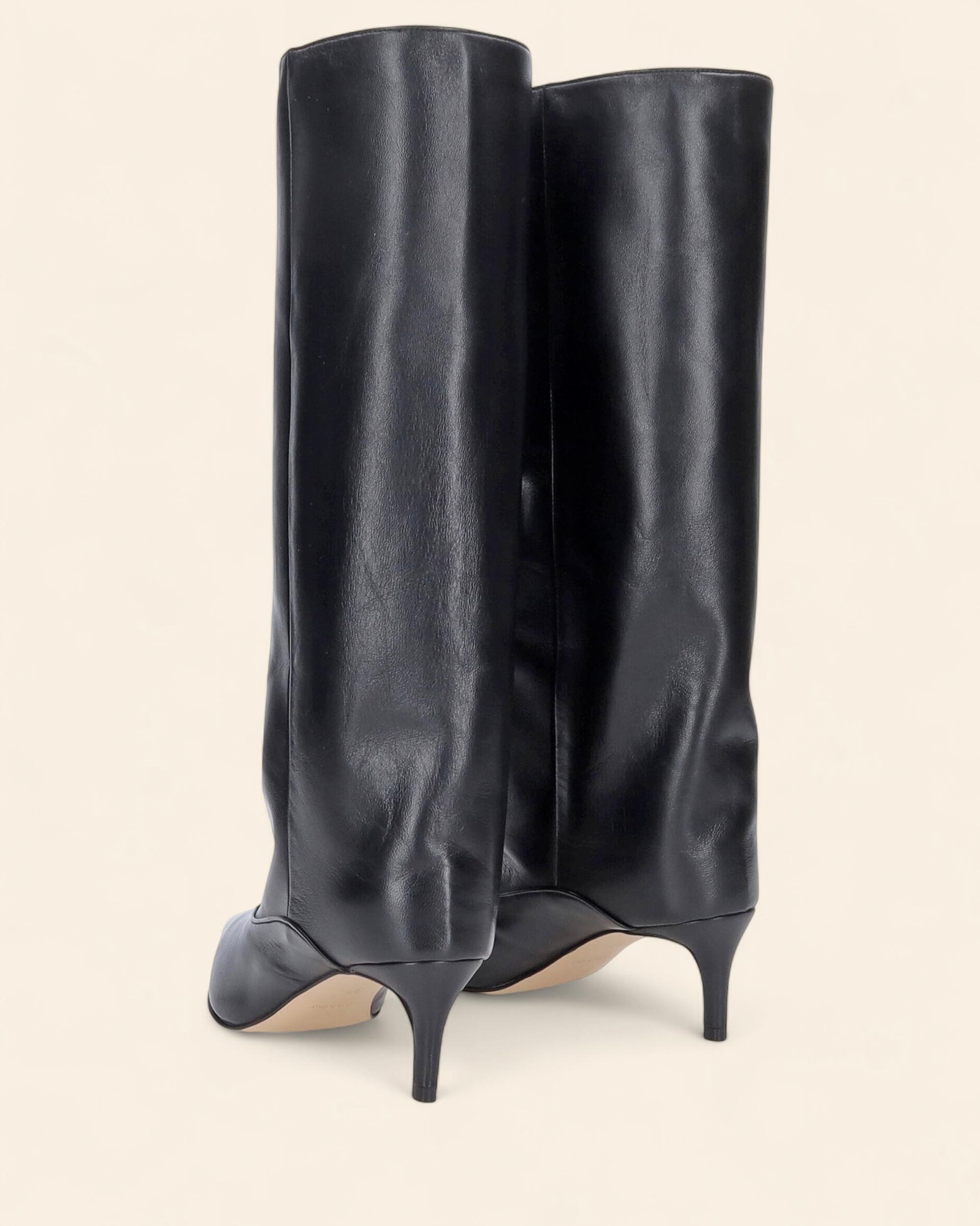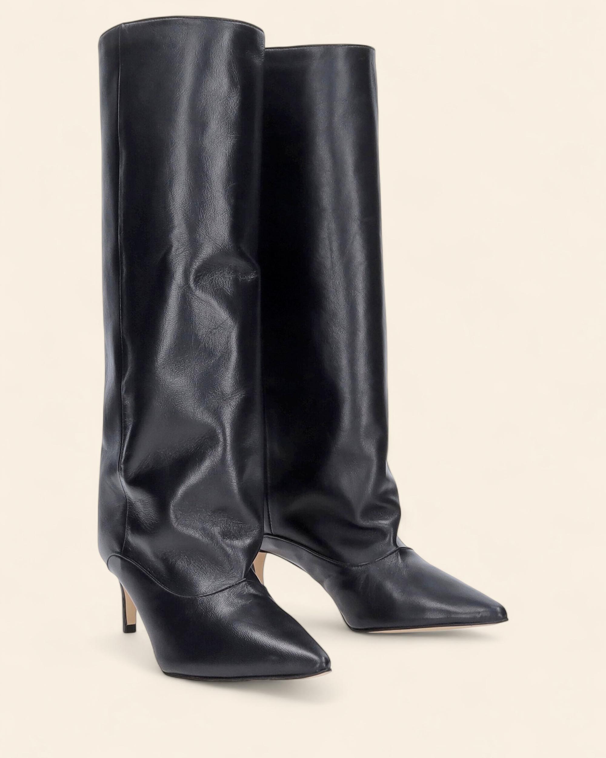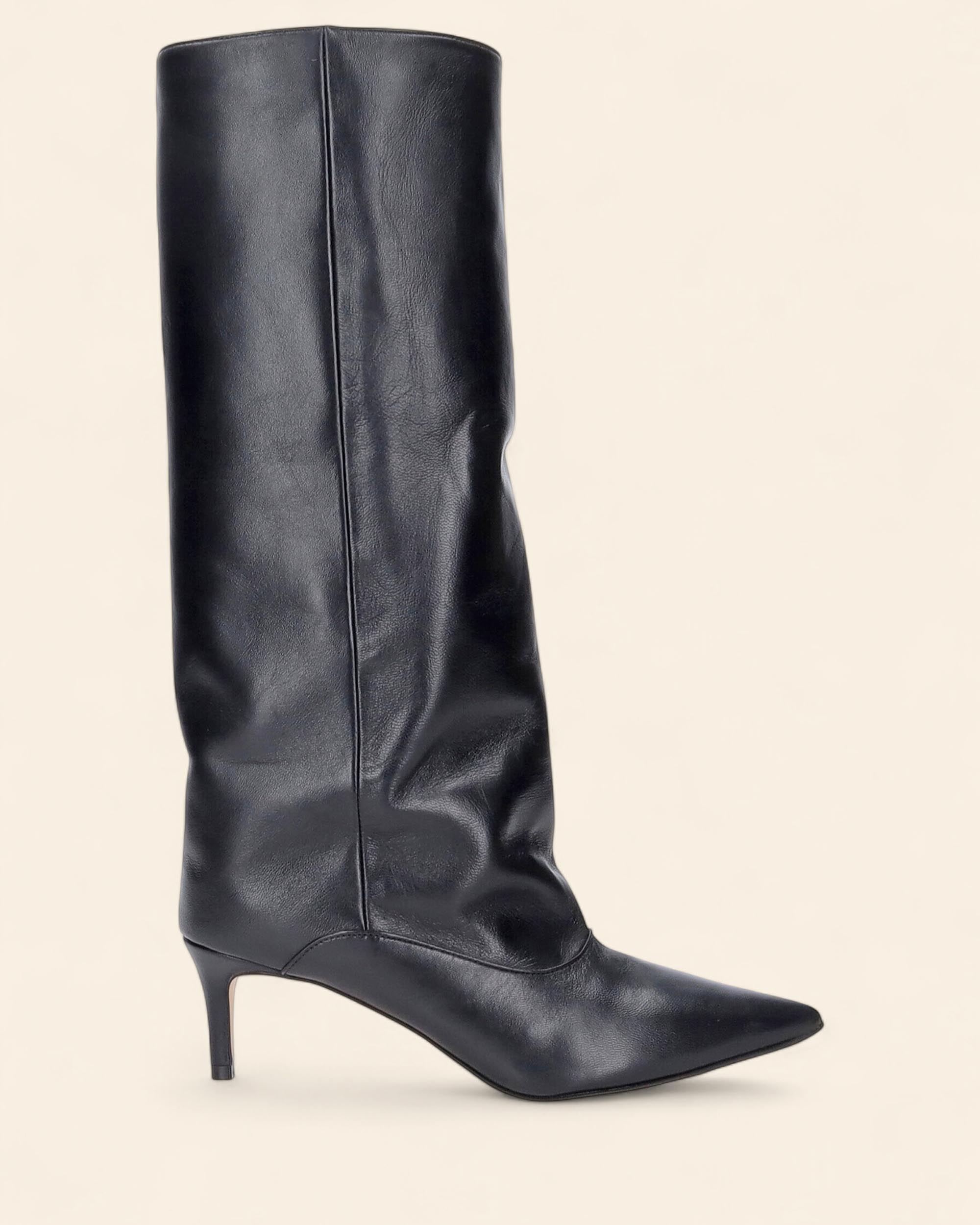 Stivali in pelle nara, sottopiede in pelle, suola in microlite, a punta, gambale a tubo foderato in pelle, tacco ricoperto 55mm, made in Italy, collezione donna Illogica autunno inverno 2025/2026