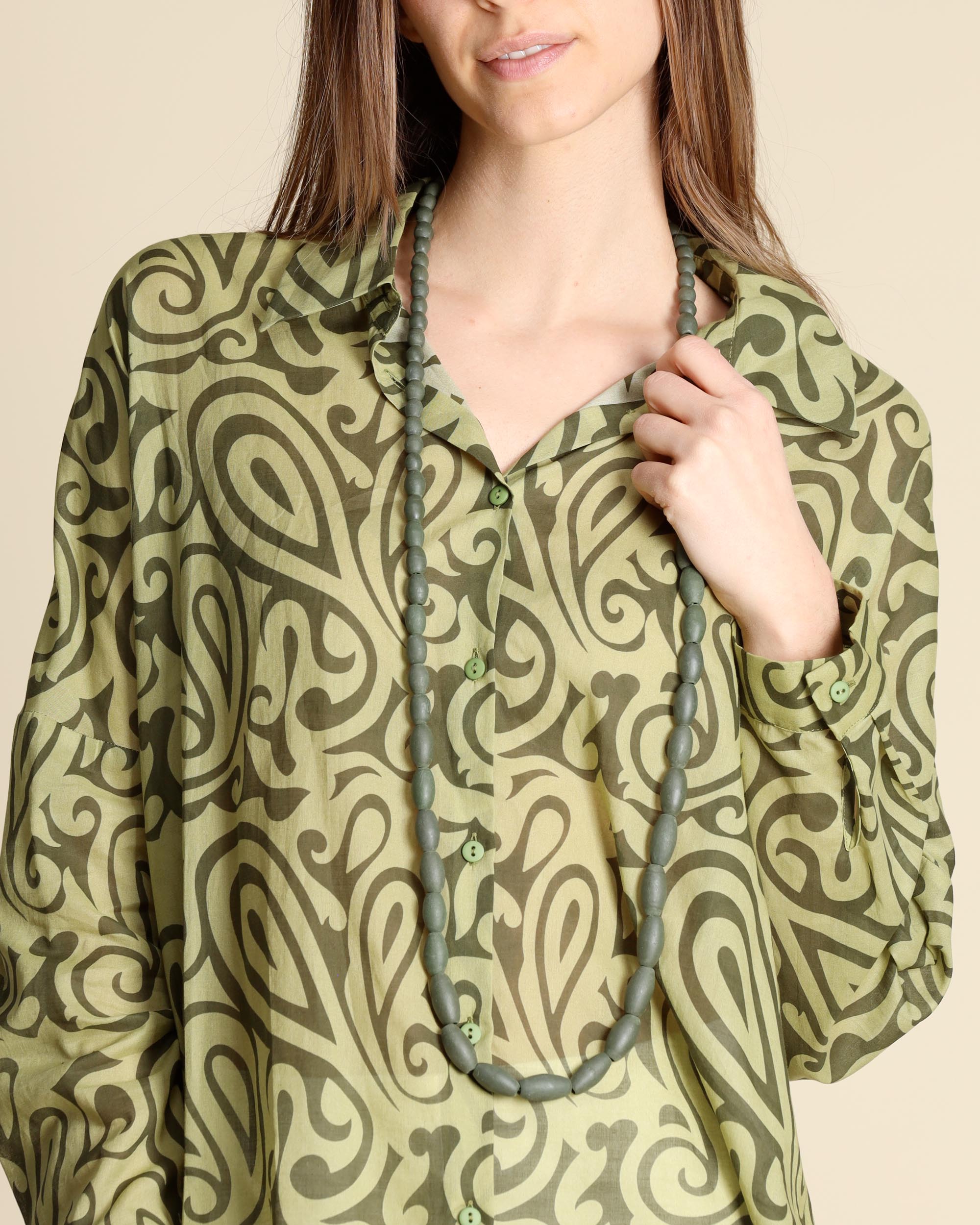 Collana lunga verde in legno, collezione donna Niù Primavera Estate 2026