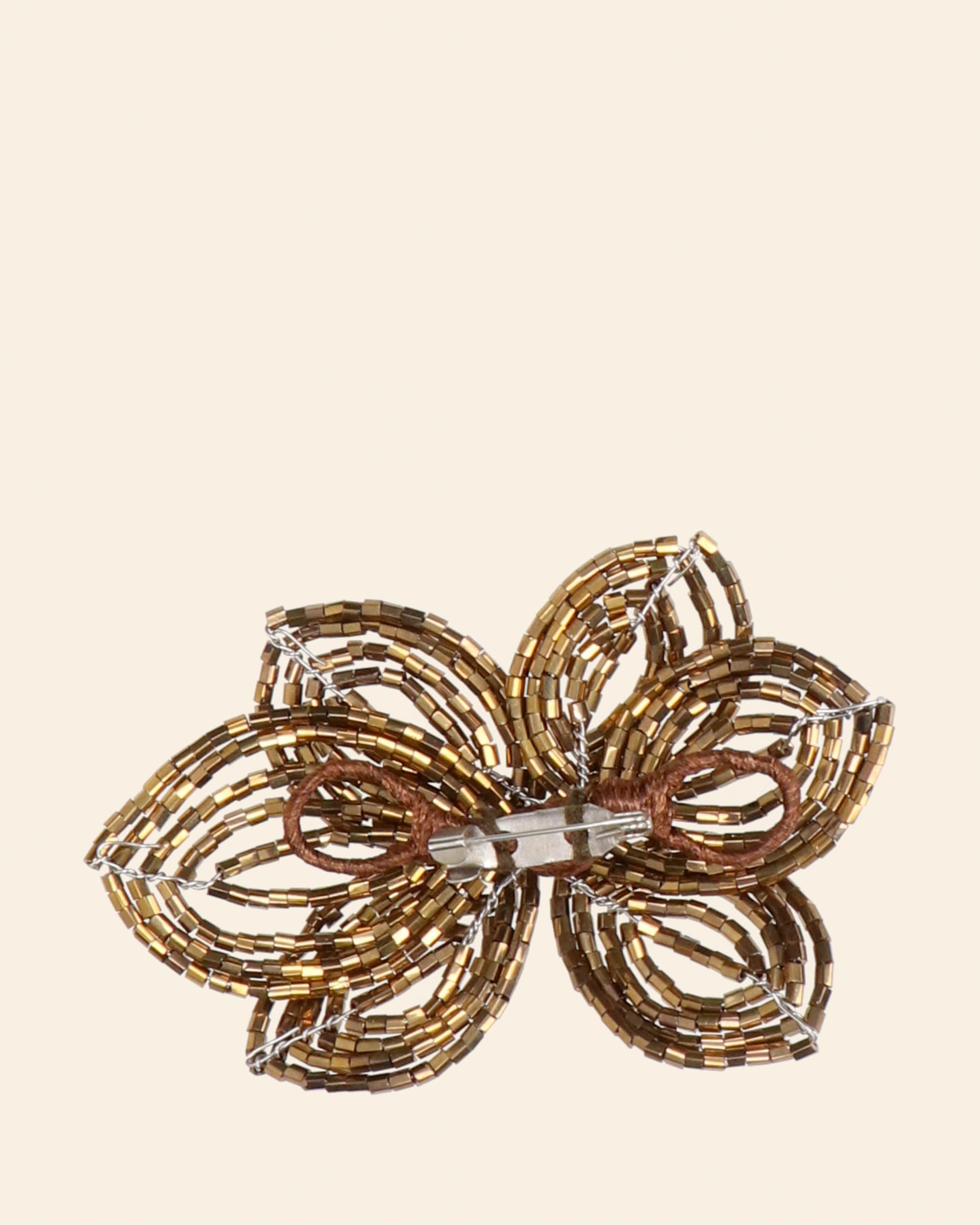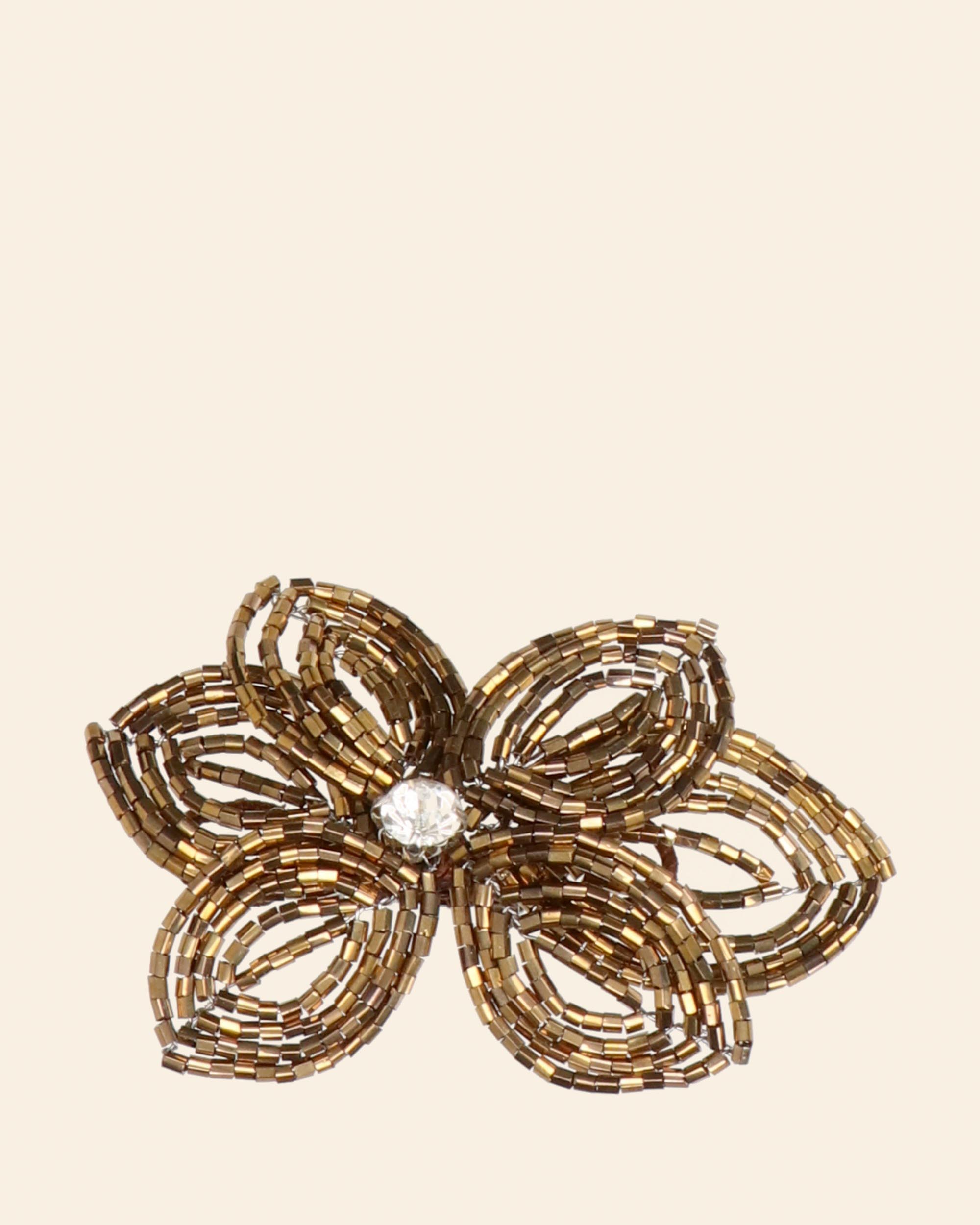 Spilla a fiore oro antico con ricami di perline, collezione donna Maliparmi Autunno Inverno 2025/26