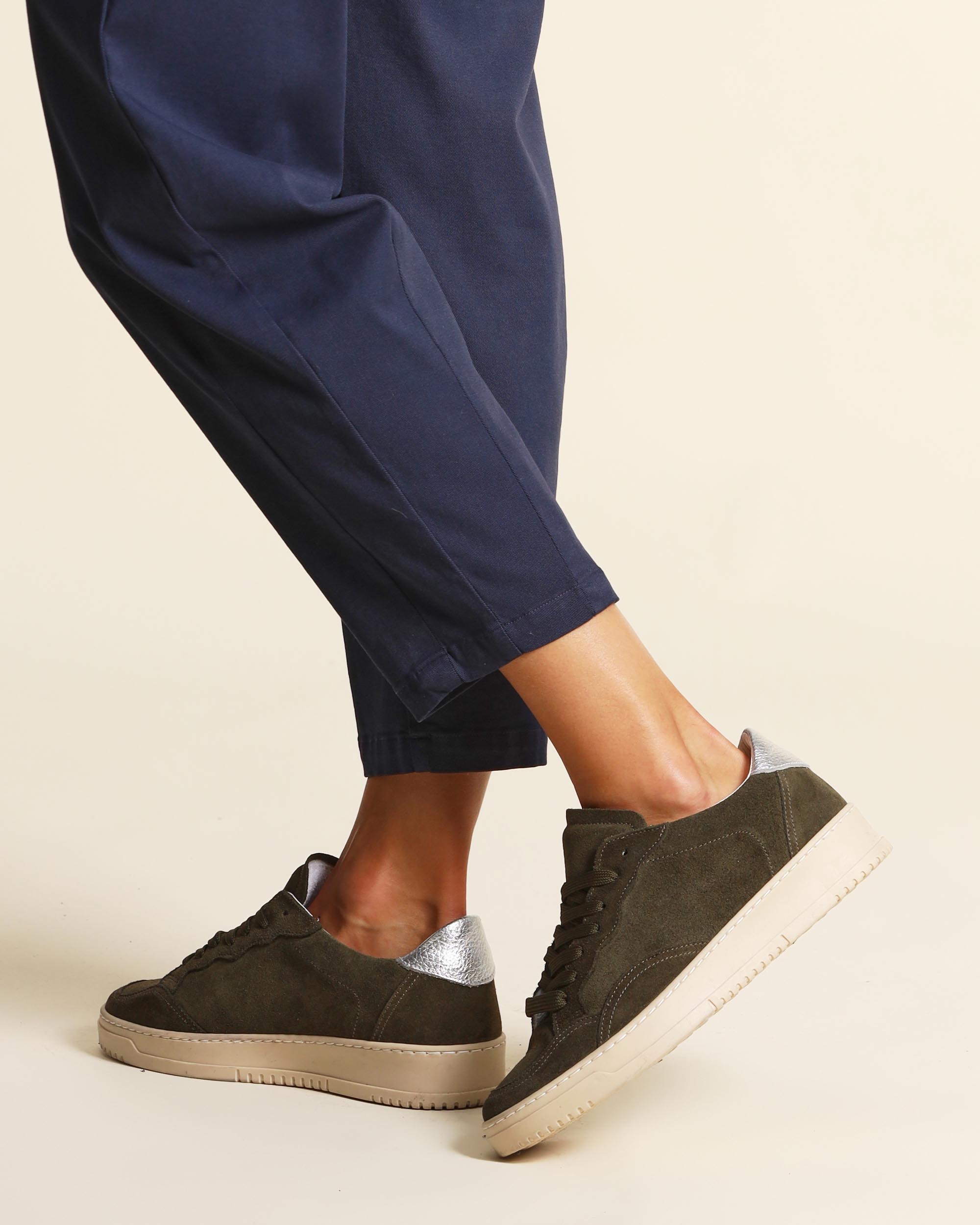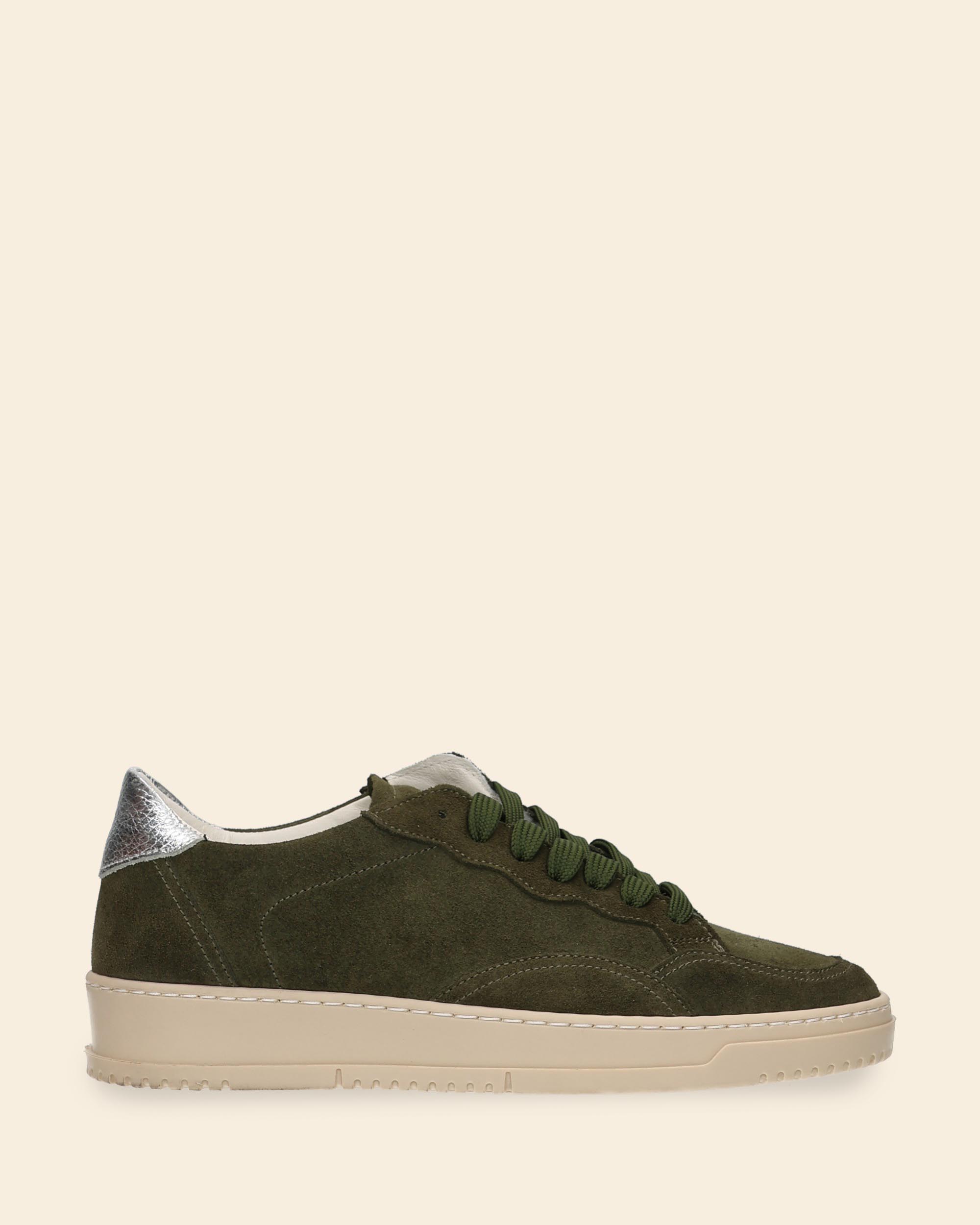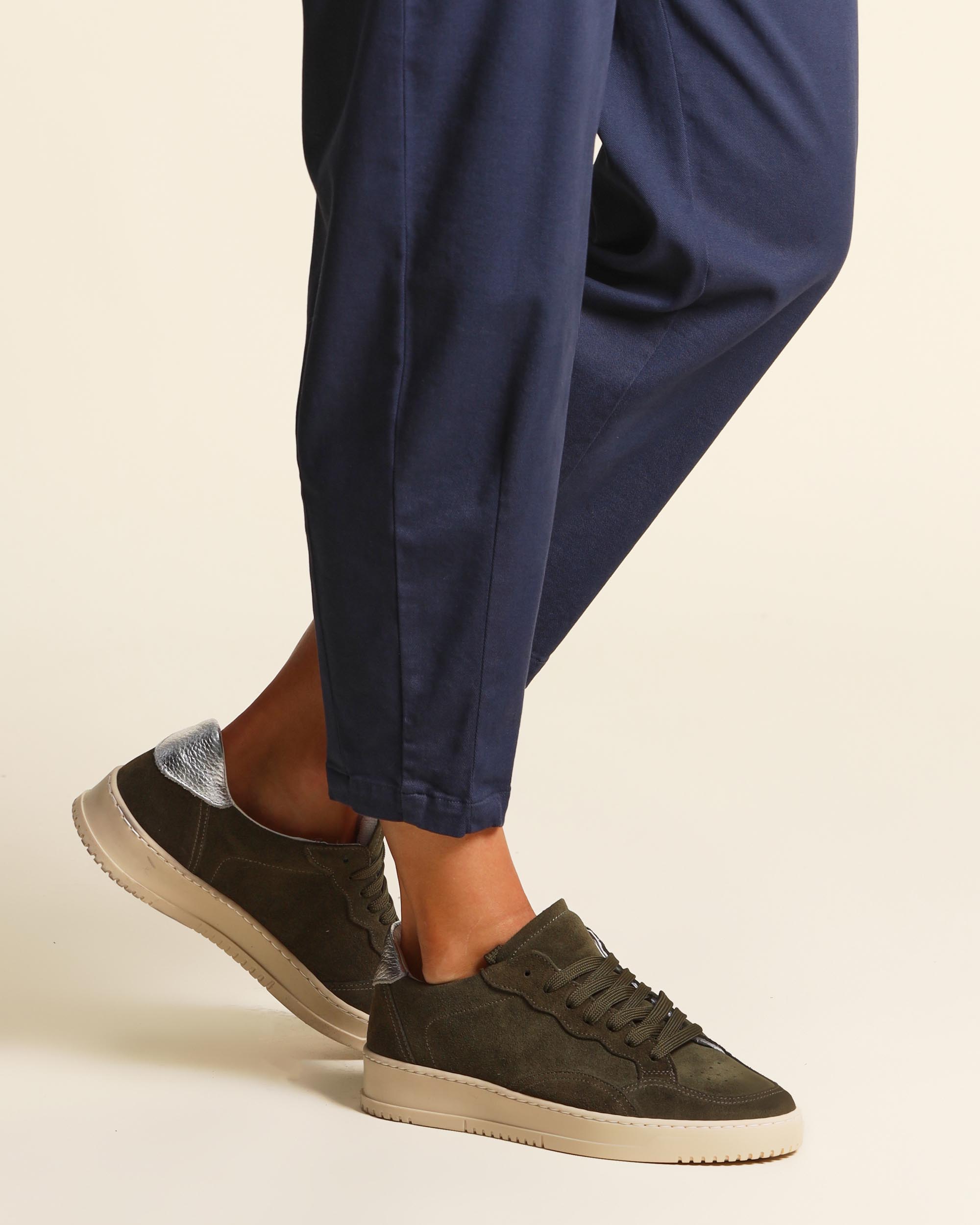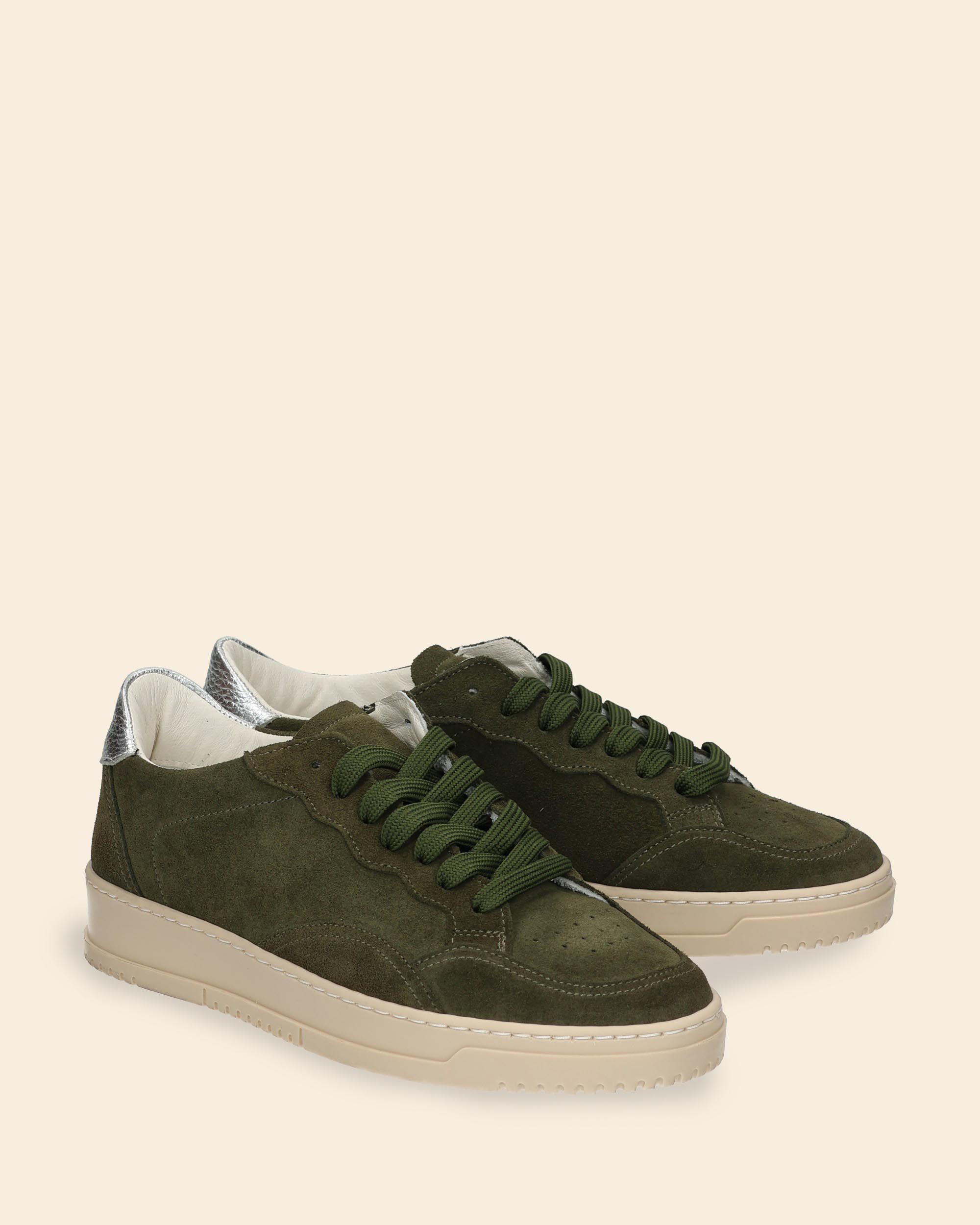 Sneakers verdi in suede, suola in gomma, sottopiede imbottito estraibile, lacci in tinta, punta tonda, made in Italy, collezione donna Play One
