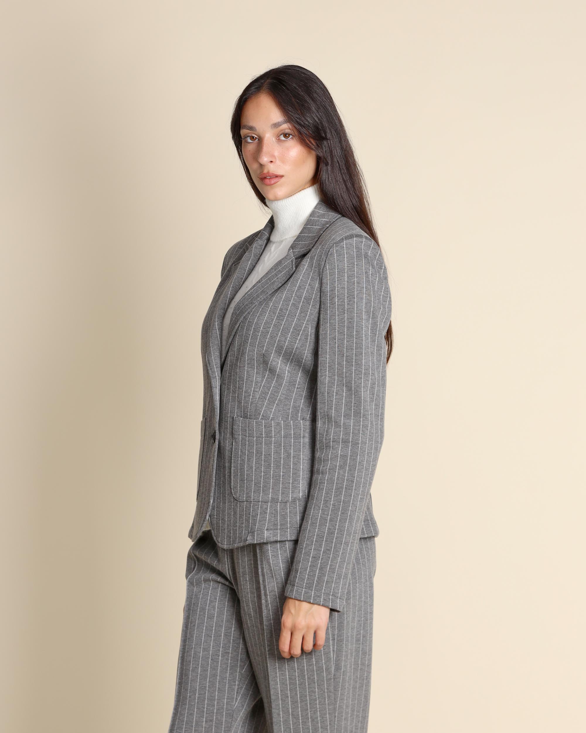 Giacca gessata in jersey